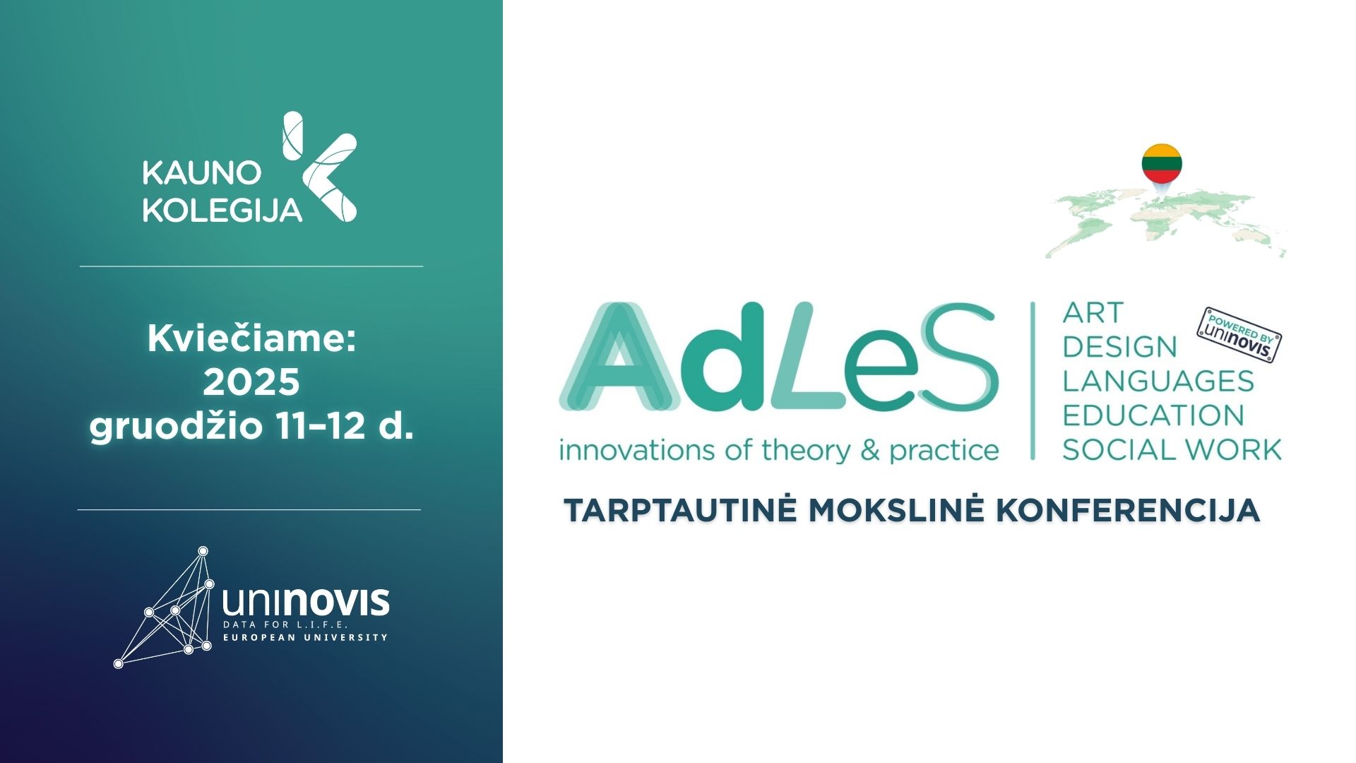 Tarptautinė mokslinė konferencija ADLES Powered by UNINOVIS 2025. Menas, dizainas, kalbos, ugdymas ir socialinis darbas: teorijos ir praktikos inovacijos vyks gruodžio 11 d., 10 val., 407 aud., Kauno kolegijoje (Pramonės pr. 22A, Kaunas). Norėdami dalyvauti – užpildykite registracijos anketą. Dalyvių registracija – iki gruodžio 10 d.