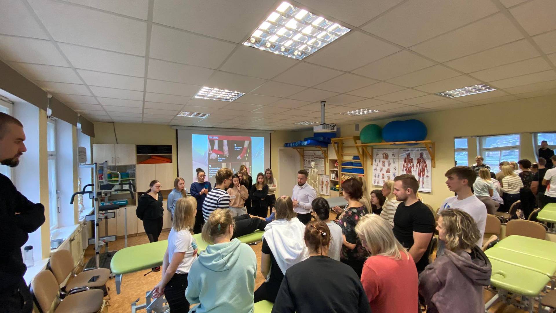 The first week of December started actively in the Rehabilitation department at the Faculty of Medicine, Kaunas University of Applied Sciences (KUAS). As one of our strategic partners is Tartu Health Care College, the group of 27 students from Physiotherapy and Massage study programmes came for a short intensive programme visit on 4-6 of December. They were accompanied by the lecture of Massage Laura Lannusalu, who was met by Milda Gintilienė, the head of Rehabilitation department at KUAS.