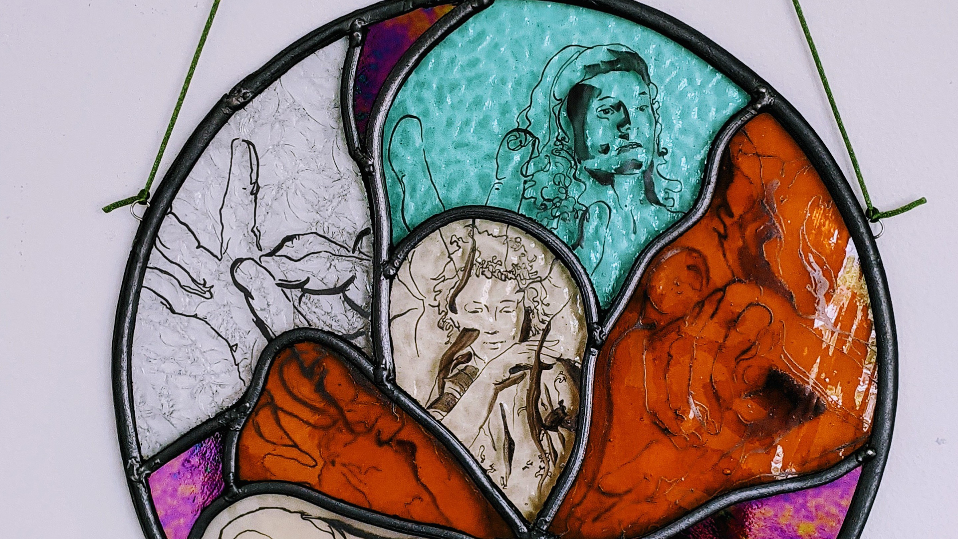 A series of portraits, presented in a virtual exhibition, created using the stained glass technique. What opportunities did this technique give you in implementing your ideas?
