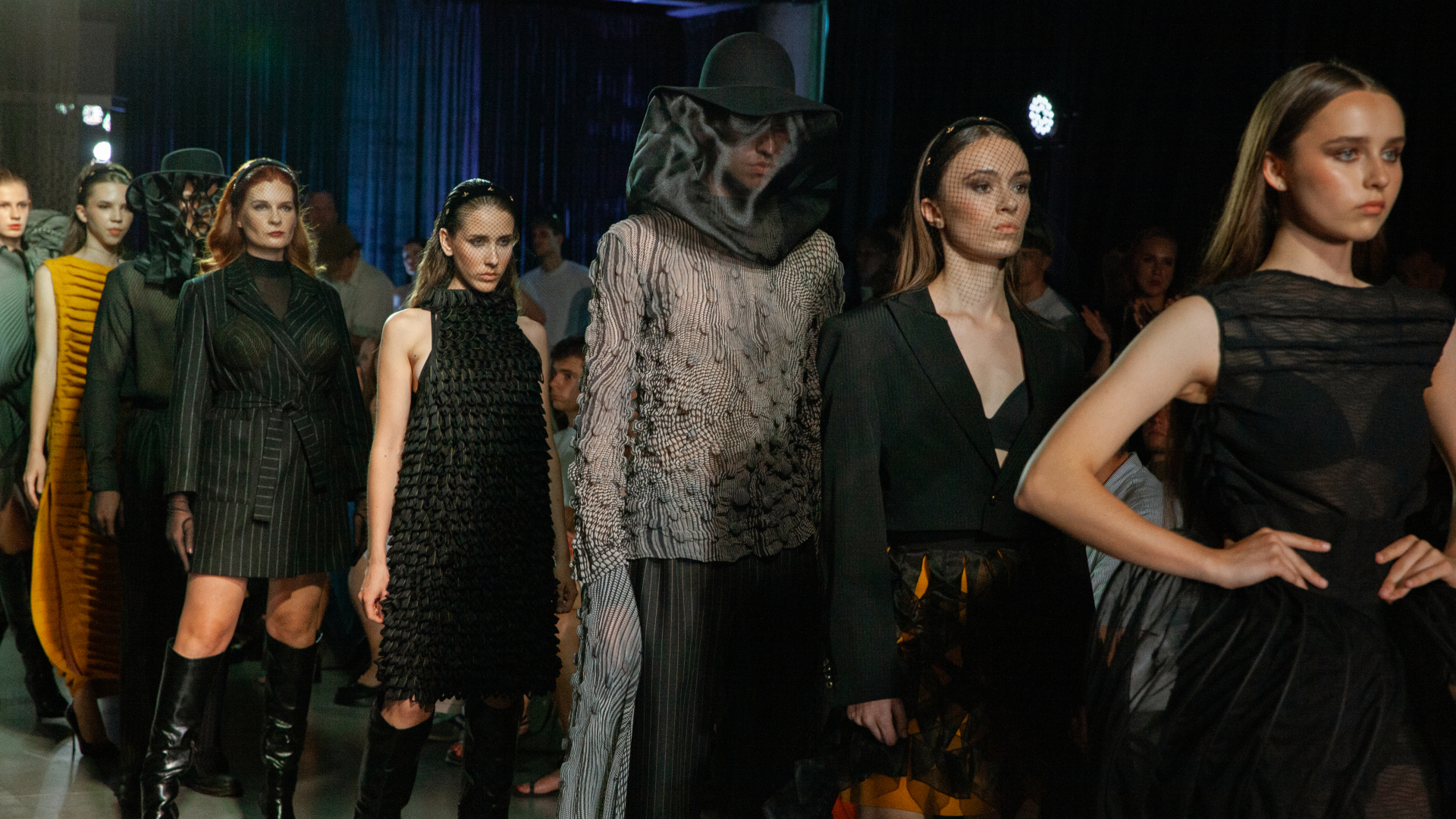 Joint Fashion Design 2nd year students’ collection (Ariana Lindez Rimaitė, Ugnė Andrikaitytė, Meida Mikalauskaitė, Gabrielė Ruškytė, Milda Aukščionytė, Emilija Čekavičiūtė, Rosita Puidokaitė, Guostė Jankeviciūtė) | CYBER ATTACK | Kauno kolegija Higher Education institution