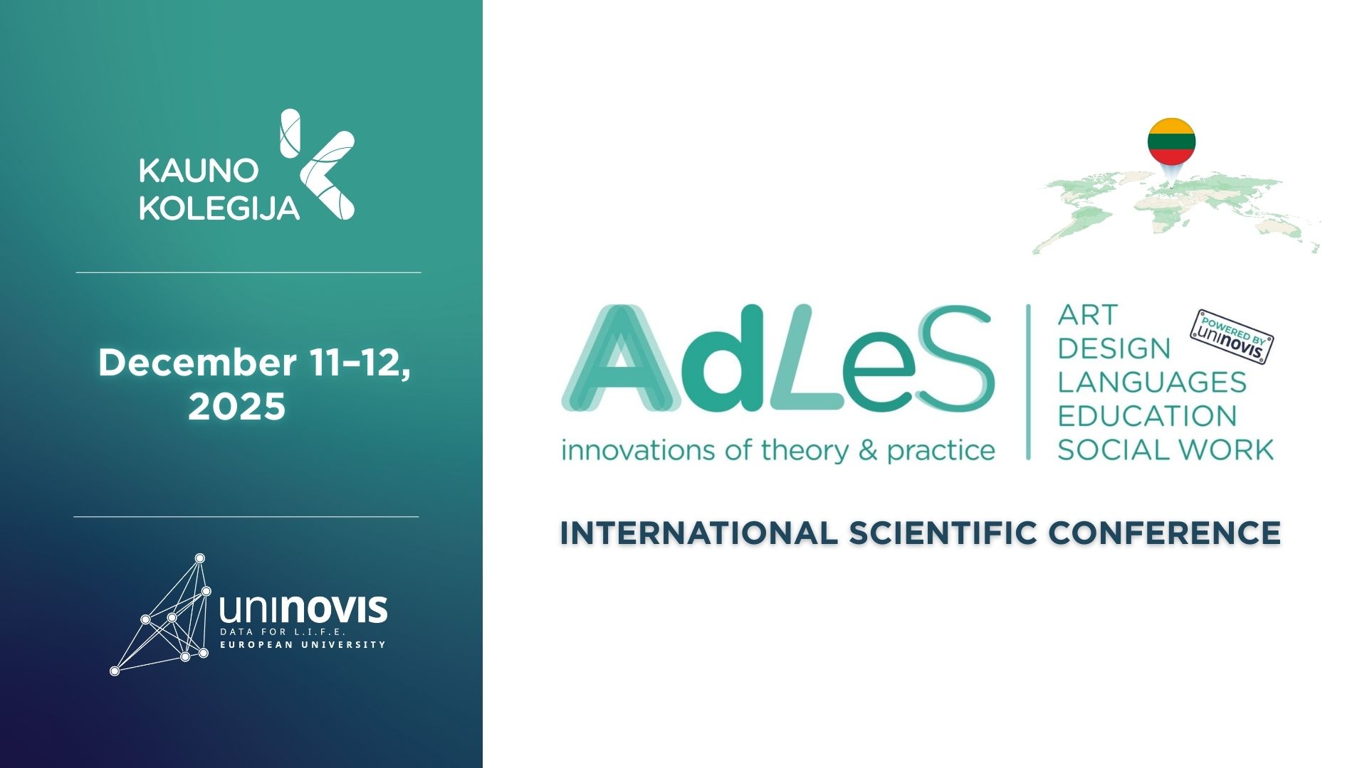 ADLES 2025 (Art, Design, Languages, Education, and Social Work: Innovations in Theory and Practice) is a dynamic, interdisciplinary conference hosted by Kauno kolegija HEI, Faculty of Arts and Education.