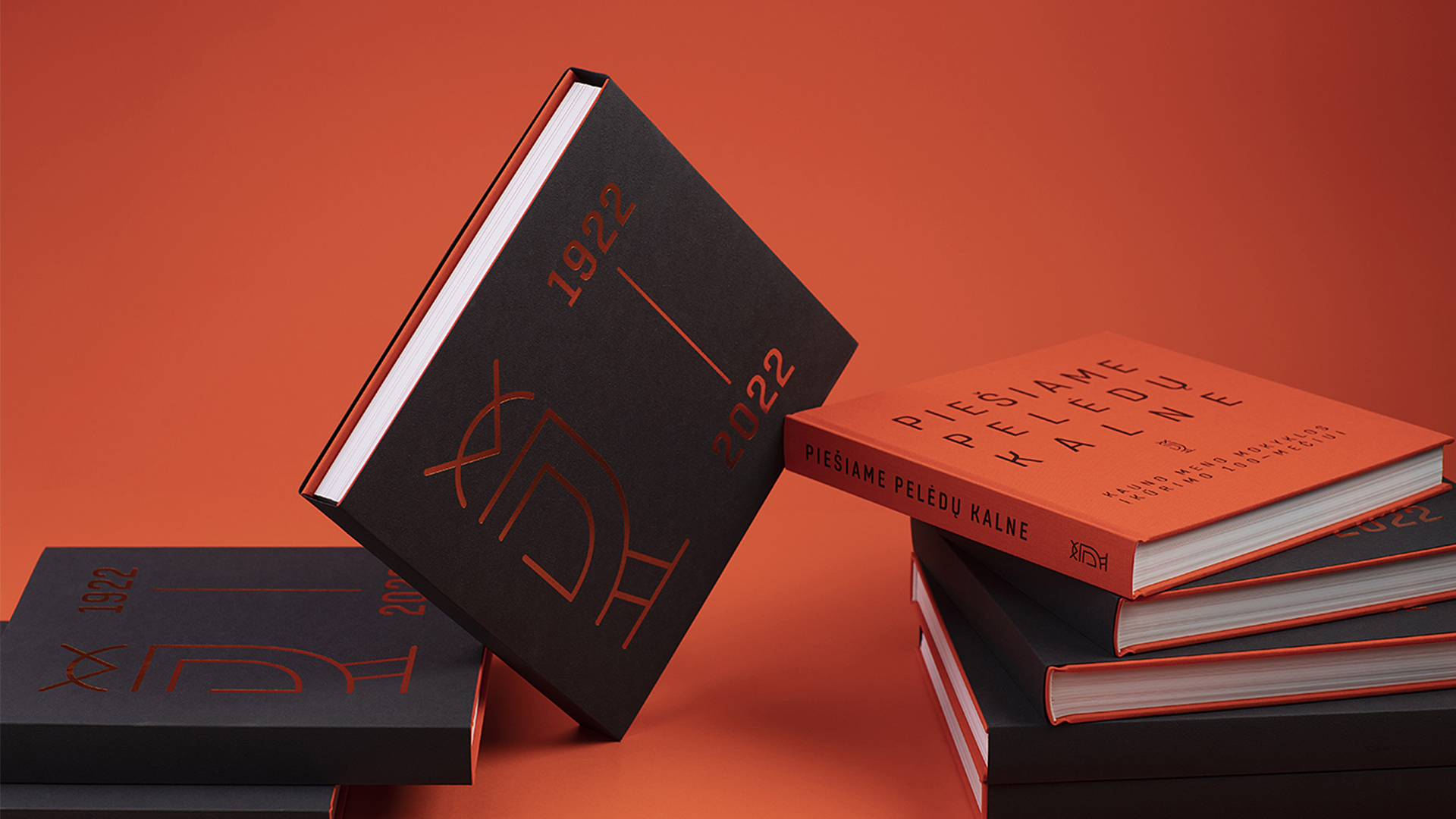 A. Mickus, who created the design of the book, wanted it not only to remind of the past, but also to reflect the present, so the book is dominated by an attention-grabbing bright orange colour, which is a symbol of energy, creativity, and is also the thematic colour of the Faculty of Arts and Education. The book is decorated with a fragment of the logo created by Gerda Burokaitė, a graduate of the Design study programme – a stylised owl, which is inseparable from the Kaunas School of Arts and the Academy of Arts, which continues its traditions. The chosen minimalist design and typography of the book are subtle, but give it a premium look and emphasise lasting value.