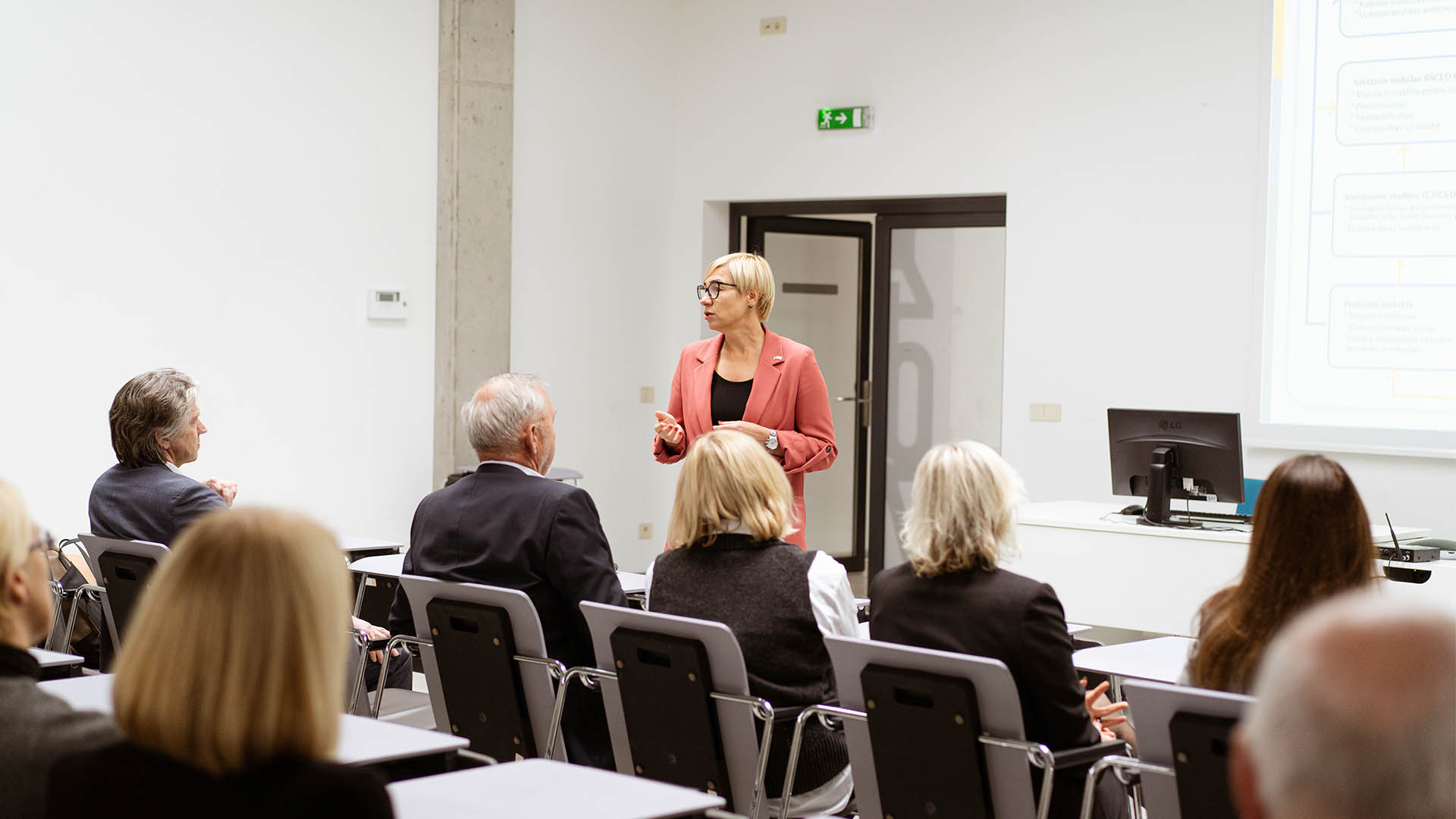 The minister first introduced changes implemented in the basic education institutions and gymnasiums and presented future plans related to reforms in the higher education sector. The community’s attention was drawn to such changes as professional guidance of pupils, their preparation for studies in higher education institutions, more opportunities to get help in learning from the school itself instead of hiring tutors, a more transparent system of knowledge verification, etc. J. Šiugždinienė noticed that these changes will affect higher education institutions as well, therefore, in order to better understand one or other actions of the ministry or other organisations, it is important for the Kaunas University of Applied Sciences community to be familiar with these changes and plans.