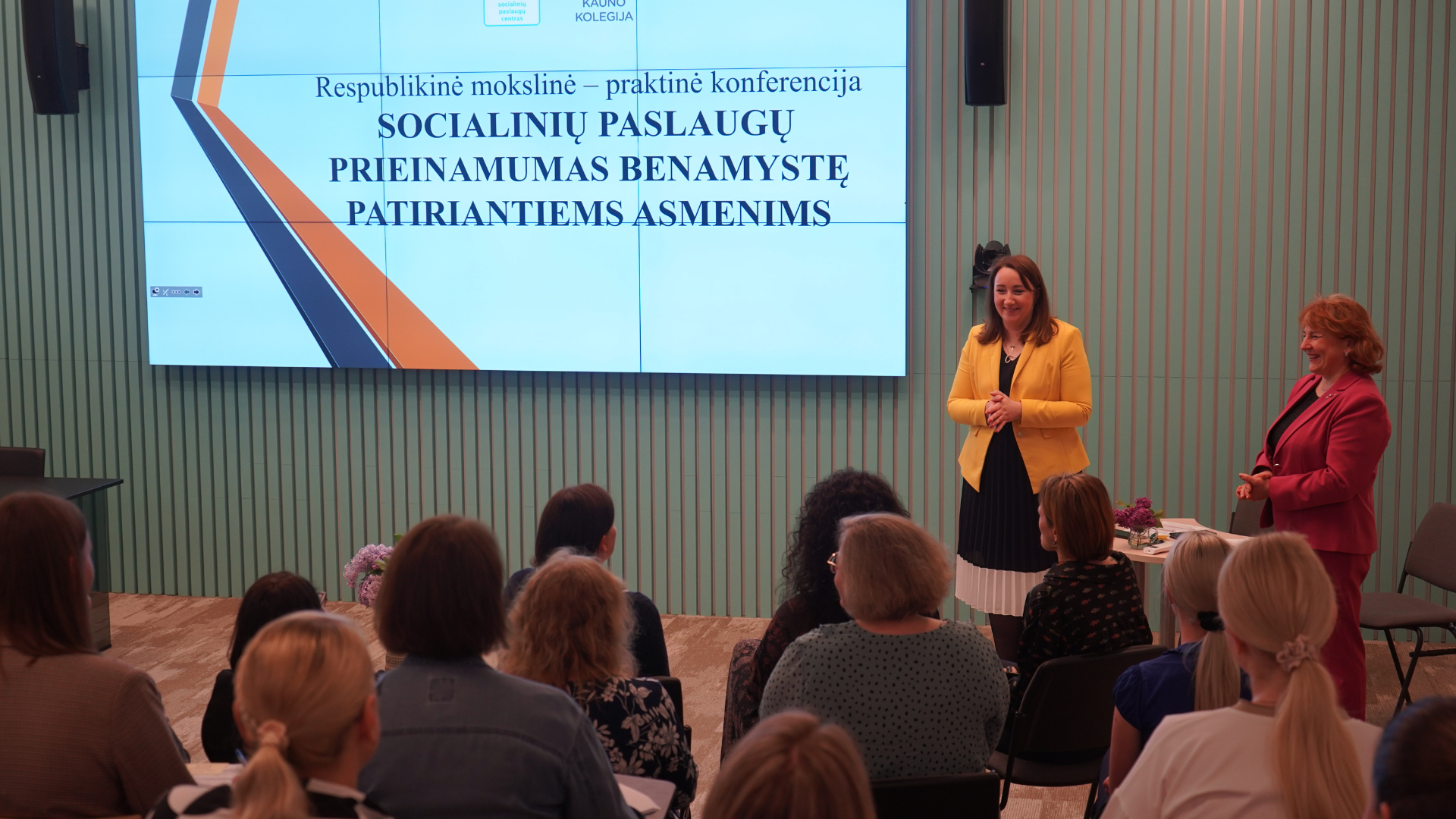 Konferencijos metu Kauno kolegijos MF Socialinio darbo katedros vedėja V. Kondratavičienė kartu su šios programos absolventais Jurgita Bacevičiene ir Raimundu Liepiniu pristatė pranešimą „Benamystę patiriančių asmenų išskirtinumas Socialinio darbo studijų programos kontekste“.