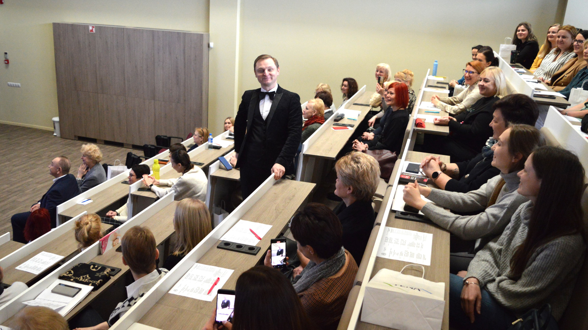 Susirinkusius dalyvius sveikino Kauno kolegijos Medicinos fakulteto dekanas J. Dovydaitis, kuris pasidalino akušerių rengimo istorija, prasidėjusia nuo 1920 m. ir besitęsiančia iki dabar. Dekanas paminėjo, kad per visą ilgą istorijos kelią paruoštas 3691 akušerijos absolventas, o šiais metais galime džiaugtis 80-ąja jubiliejine laida, kurioje ruošiami 26 akušerijos studijų programos studentai, kuriais verta didžiuotis.