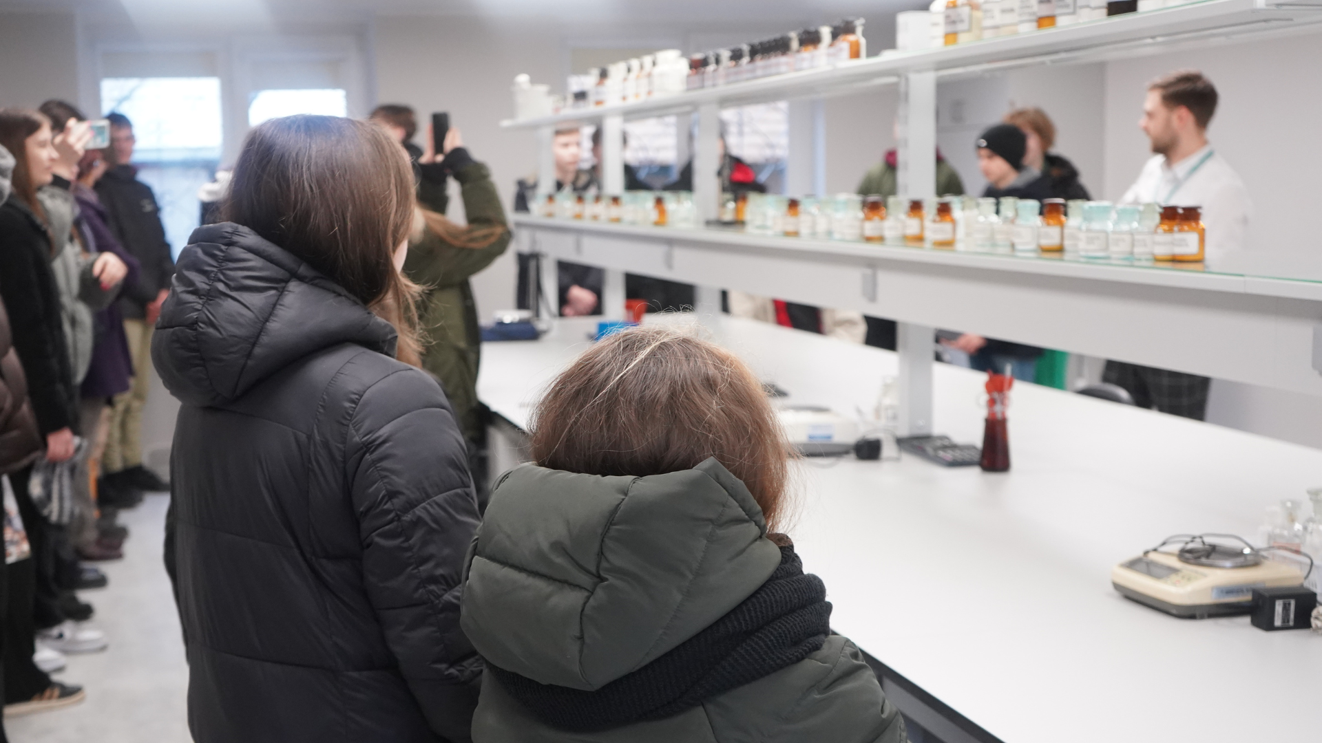 Moksleiviai susipažino ir su vaistų laboratorijomis, kurias aprodė Farmakotechnikos katedros vedėjas A. Galkontas. Vedėjas ne tik papasakojo apie farmakotechnikos studijų programą, bet ir parodė katedroje įrengta simuliacinę vaistinę, kurioje studentai mokinasi apie vaistus, jų pateikimą ir pritaikymą klientams.