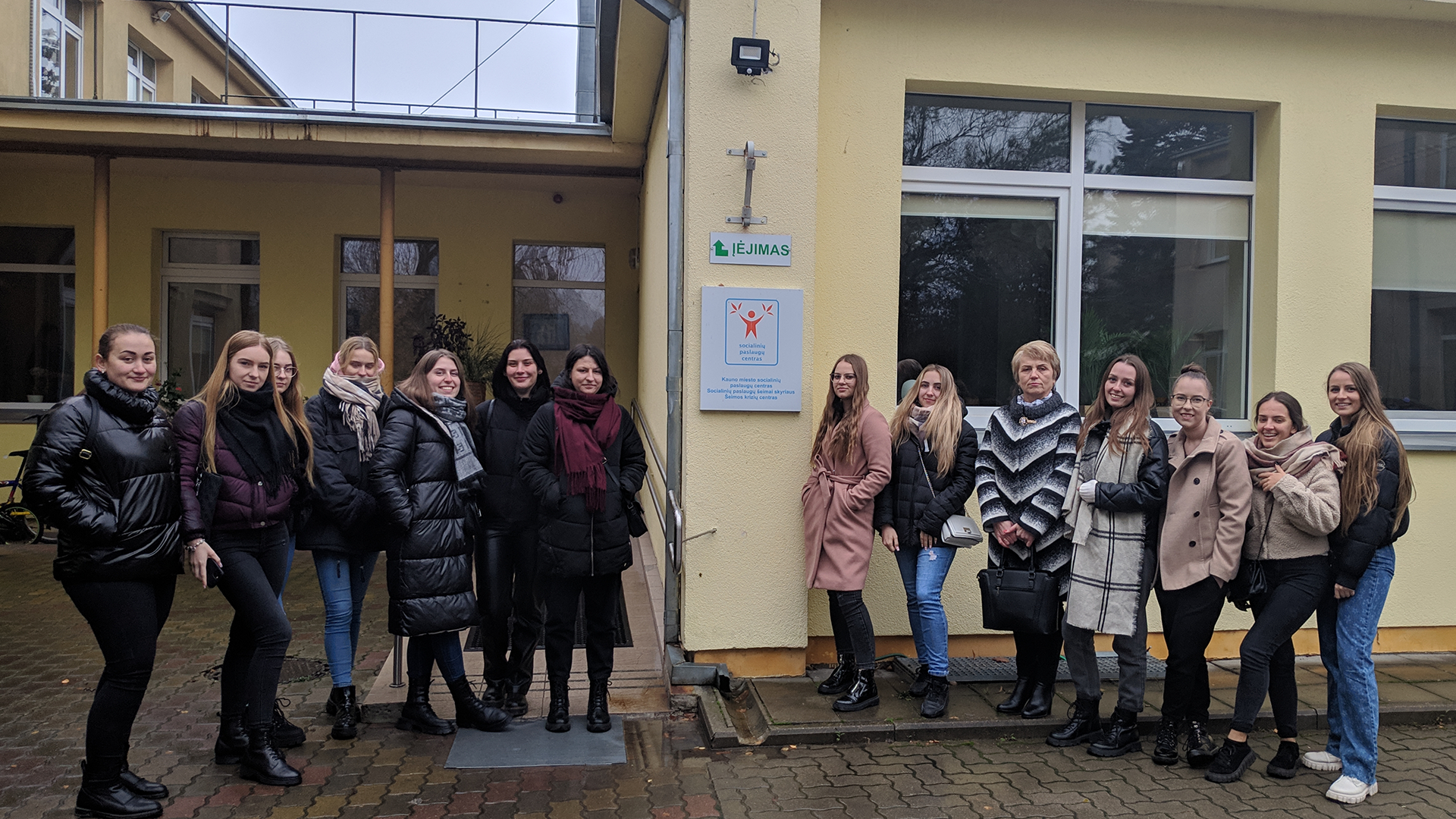 Šeimos krizių centras – teikia socialines paslaugas vaikams ir jų šeimoms, kurios patiria socialinę riziką. Taip pat vaikams, kuriems nustatyta laikinoji priežiūra, smurtą patyrusiems asmenims ir jų vaikams. Kauno miesto socialinių paslaugų centro direktoriaus pavaduotoja Birutė Mikulėnaitė supažindino studentus su bendrosiomis ir specialiosiomis socialinėmis paslaugomis socialinę riziką patiriantiems vaikams ir jų šeimoms bei darbo su šia klientų grupe aktualijomis. Užsiėmimo metu socialinio darbo katedros lektorė I. Venckienė ir trečio kurso socialinio darbo studentai analizavo temą „Intensyvi krizių įveikimo pagalba šeimoms socialinių paslaugų įstaigoje“.