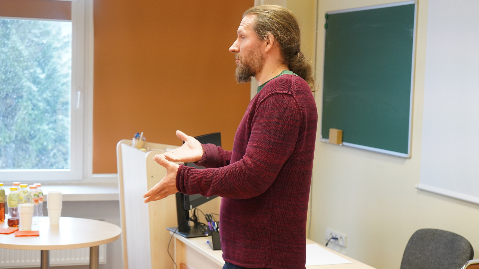 K. Kaupas supažindino su VŠĮ „Debesų pieva“ vykdomais socialiniais projektais. Pasidalino patirtimi apie vizitus į Pravieniškių pataisos namus. Susitikimo metu buvo diskutuojama apie faktorius lemiančius asocialaus elgesio formavimąsi, asocialiu elgesiu pasižyminčių asmenų patiriamus krizinius išgyvenimus, bendravimo su jais ypatumus bei įgalinimo pozityviems pokyčiams būdus. Studentai uždavė klausimų apie savanorystės VŠĮ „Debesų pieva“ veikloje galimybes.