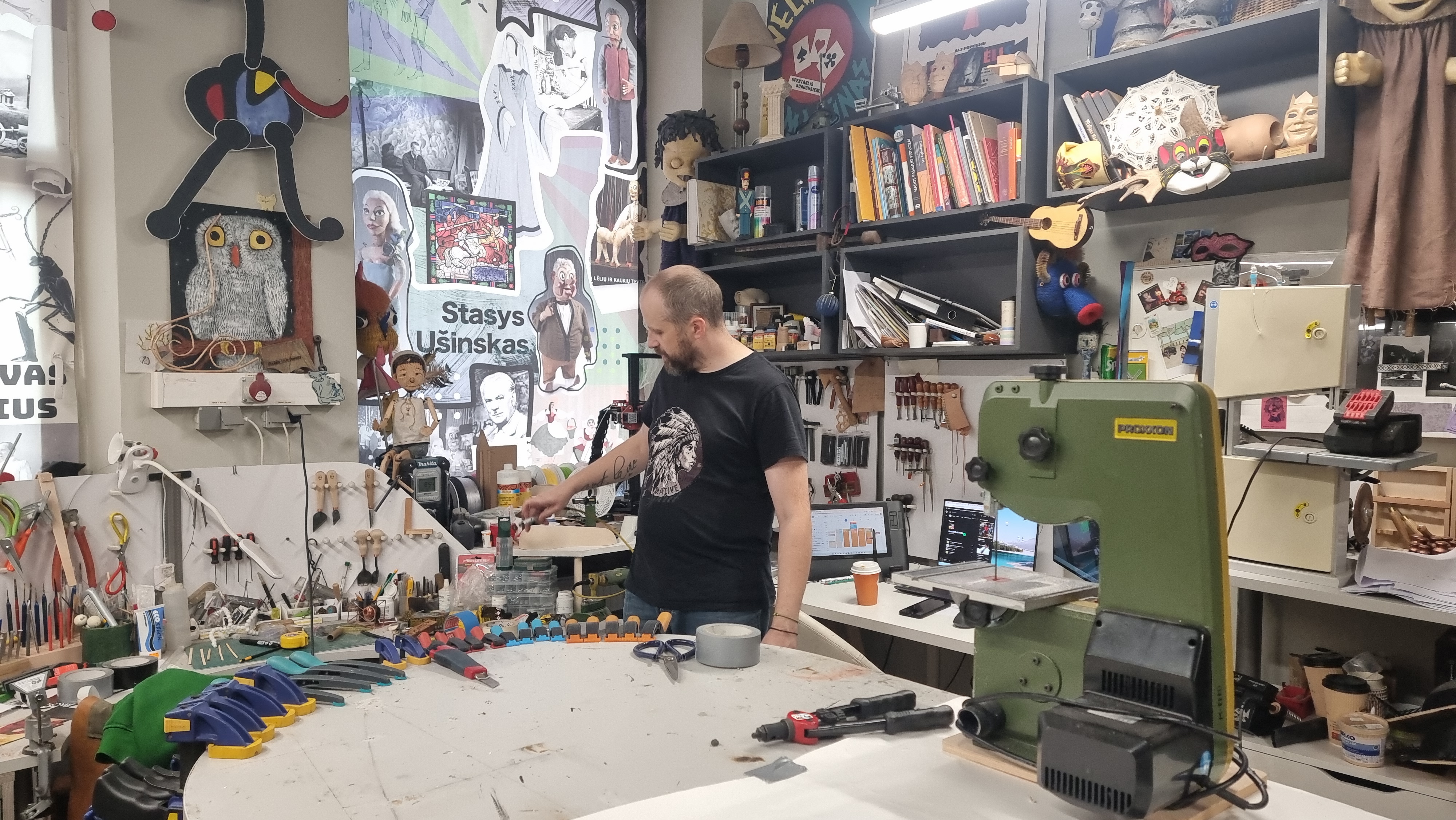Studentes priėmė Menų akademijos absolventas, menininkas ir dizaineris Audrius Bartninkas, kuris supažindino su teatro istorija, garsiais Lietuvos menininkais, prisidėjusiais prie lėlių teatro ir kino tradicijų kūrimo, bei pristatė savo kūrybinę veiklą.