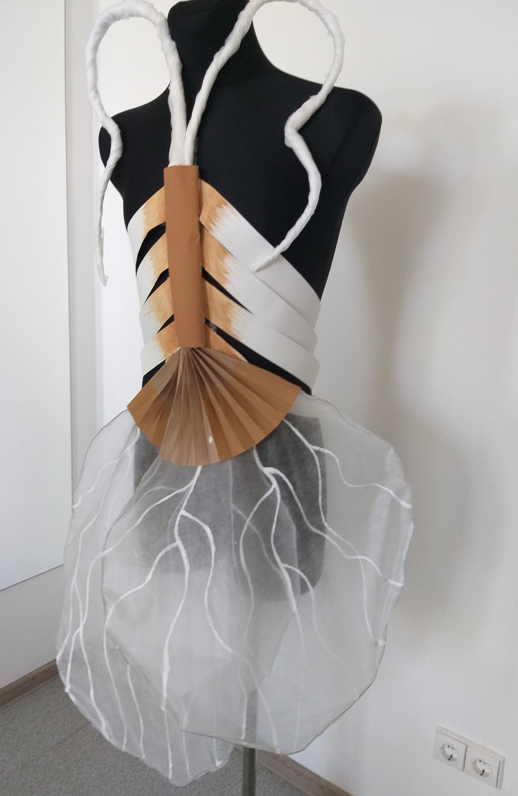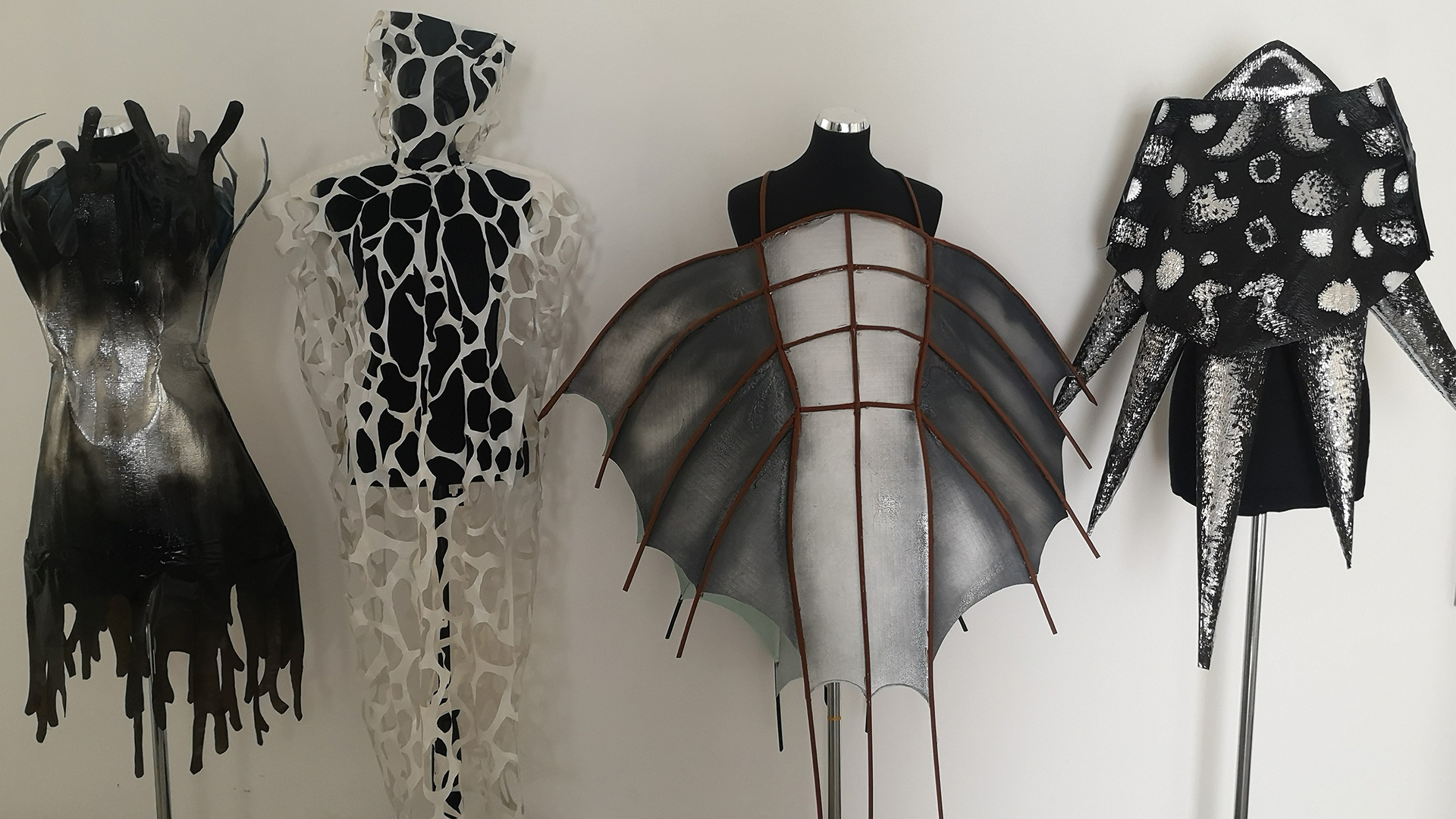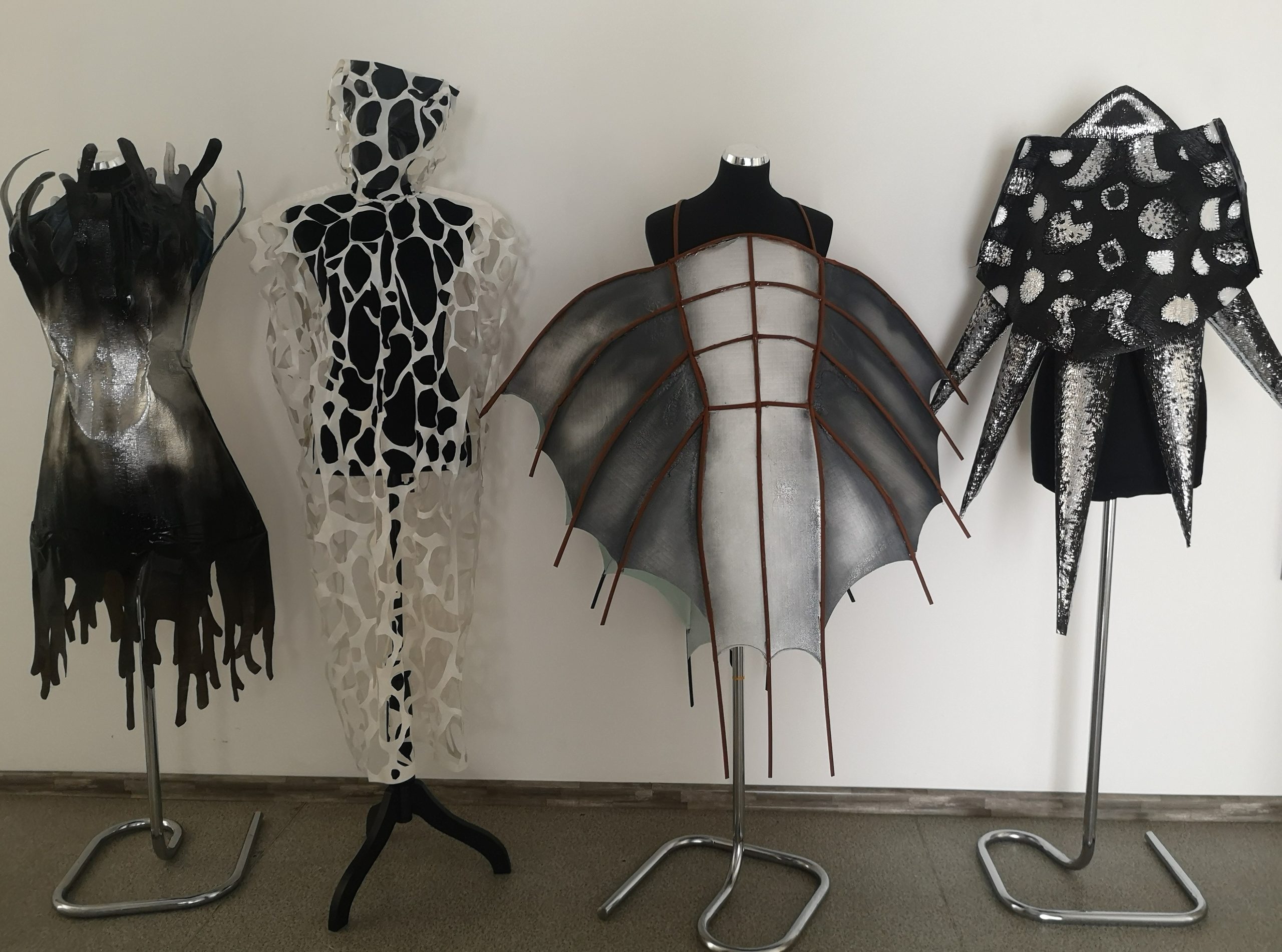 Atsirinkę geriausius savo piešinius, pirmakursiai sukūrė jų įkvėptus konceptualius drabužių modelius, naudodami netradicines medžiagas, kiekvienam modeliui suteikusias originalumo, netikėtumo.