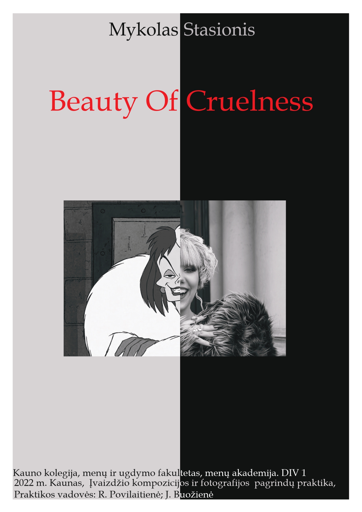 Kauno kolegijos Menų ir ugdymo fakulteto Menų akademijos Įvaizdžio dizaino studijų programos antrakursiai „Įvaizdžio kompozicijos ir fotografijos pagrindų praktikos” metu savo dėmesį sutelkė į kino studijos „Disney“ pristatyto nuotykių kupino „101 dalmantino“ istorijos priešistorės filmo veikėją – mados dizainerę Kruelą De Vil.