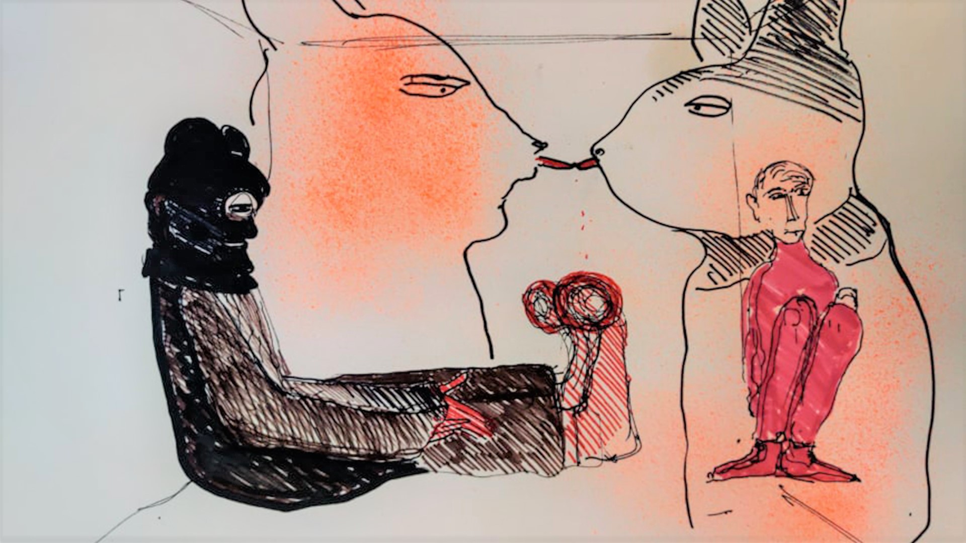 Tapytojo piešiniuose, kaip ir drobėse, sapnų, fantazijų pasaulio vaizdiniai mainosi su supančios realybės fragmentais. Nelieka skirties tarp to, kas tikra, o kas – pramanyta. Atsiveria naujas – A. Martinaičio – pasaulis, kuriame knibžda fantasmagoriškos būtybės, animalistiniai veikėjai, personažai iš vaikystės pasakų.