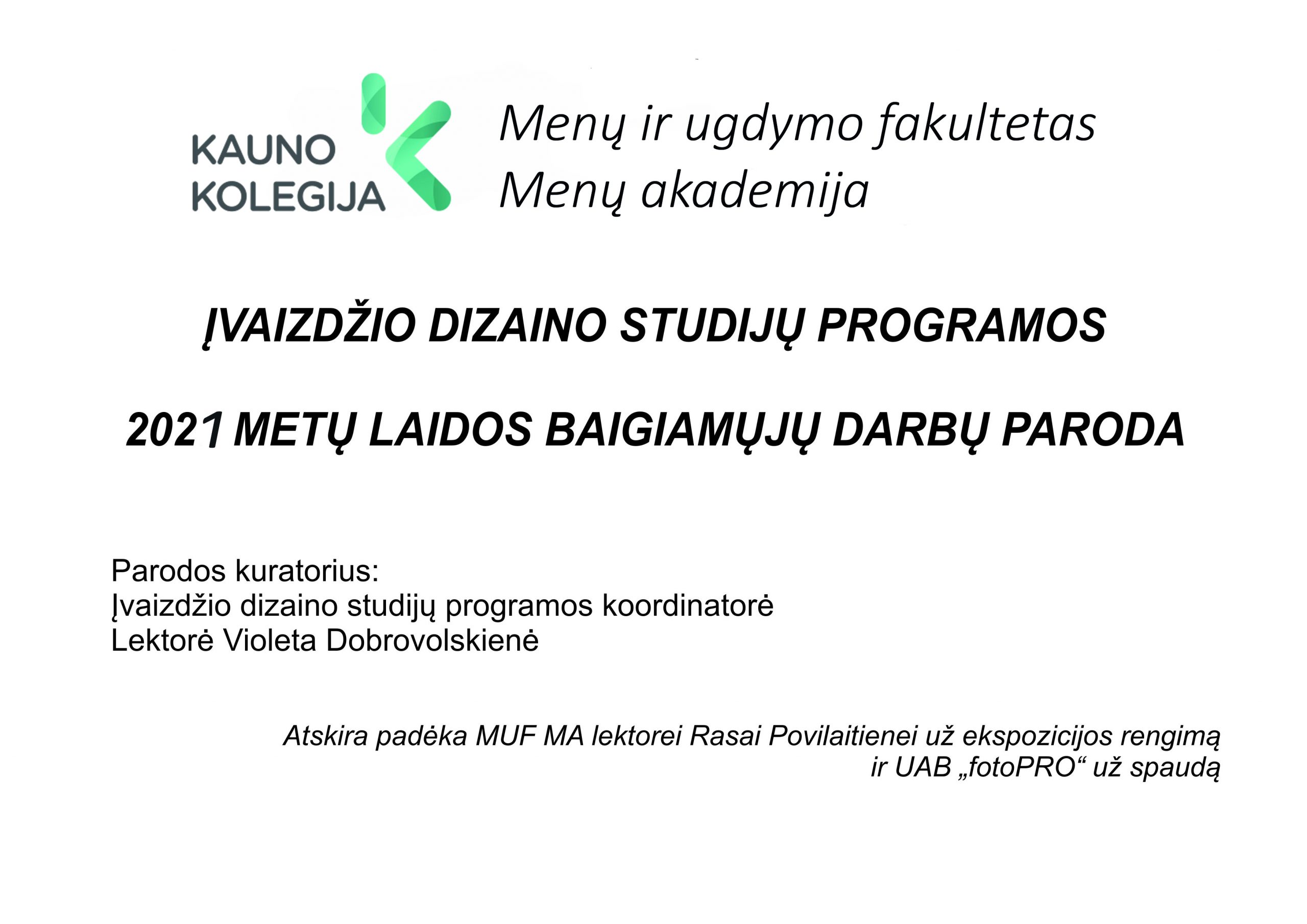 Parodos kuratorė: Įvaizdžio dizaino studijų programos koordinatorė Violeta Dobrovolskienė