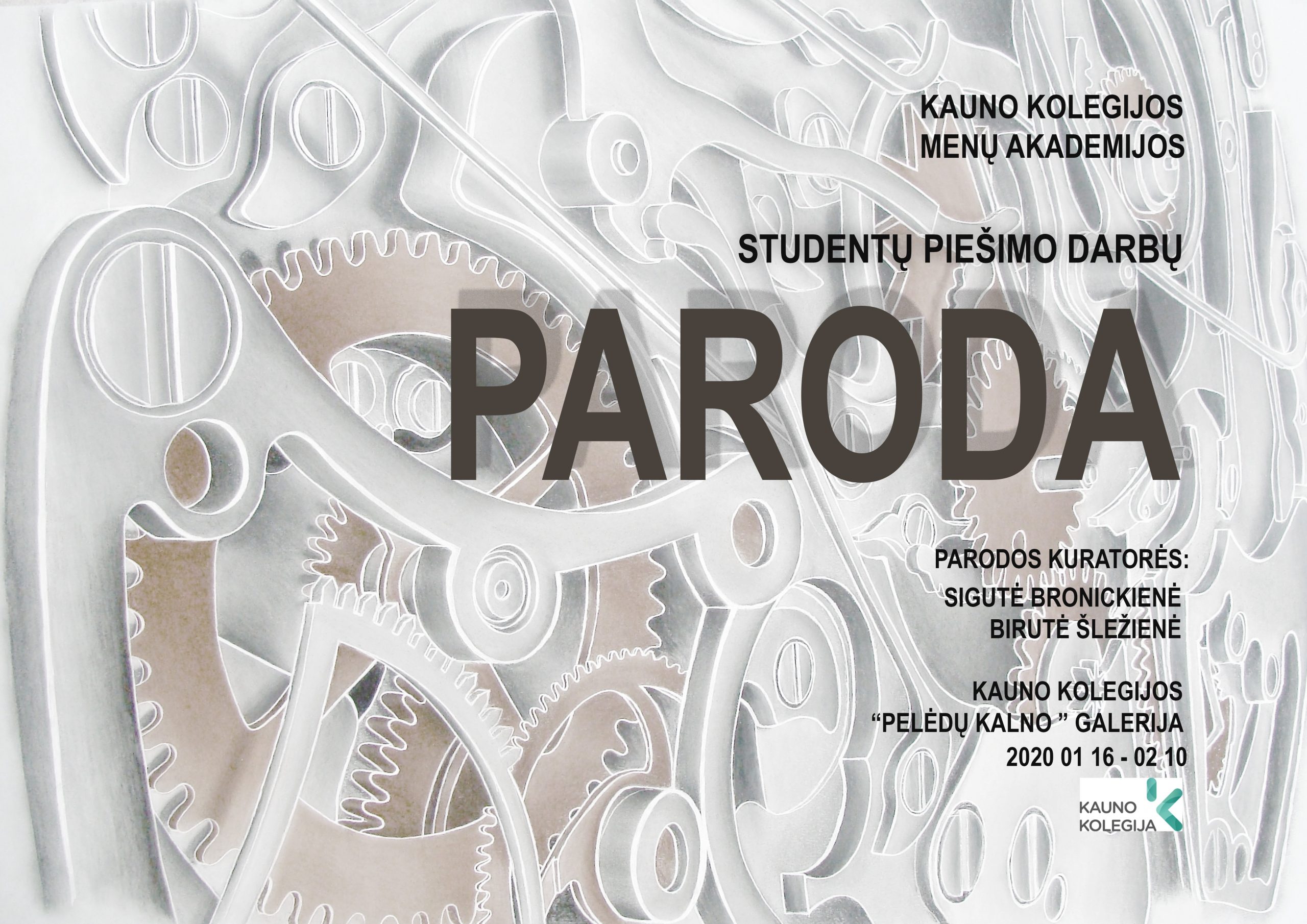 Iki vasario 5 d. Kauno kolegijos Menų akademijos „Pelėdų kalno“ galerijoje (A. Mackevičiaus g. 27, Kaunas) eksponuojama studentų piešinių paroda. „Parodoje pristatomi studentų, praėjusiais mokslo metais, kurti piešiniai, atliekant studijų programų užduotis, o taip pat ekspoziciją papildo darbai, kuriuos jaunieji menininkai kuria laisvalaikiu. Jie įdomūs temų įvairove, skirtinga vizualine raiška“, – sako viena iš parodos kuratorių, dėstytoja Birutė Šležienė.