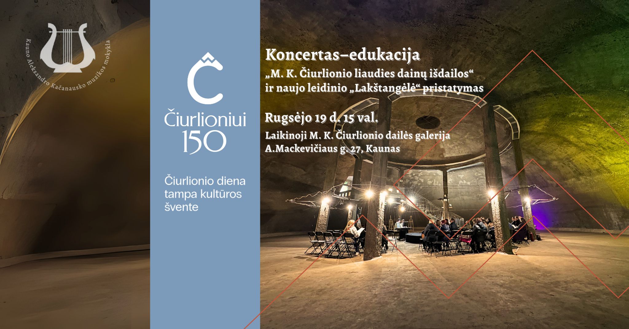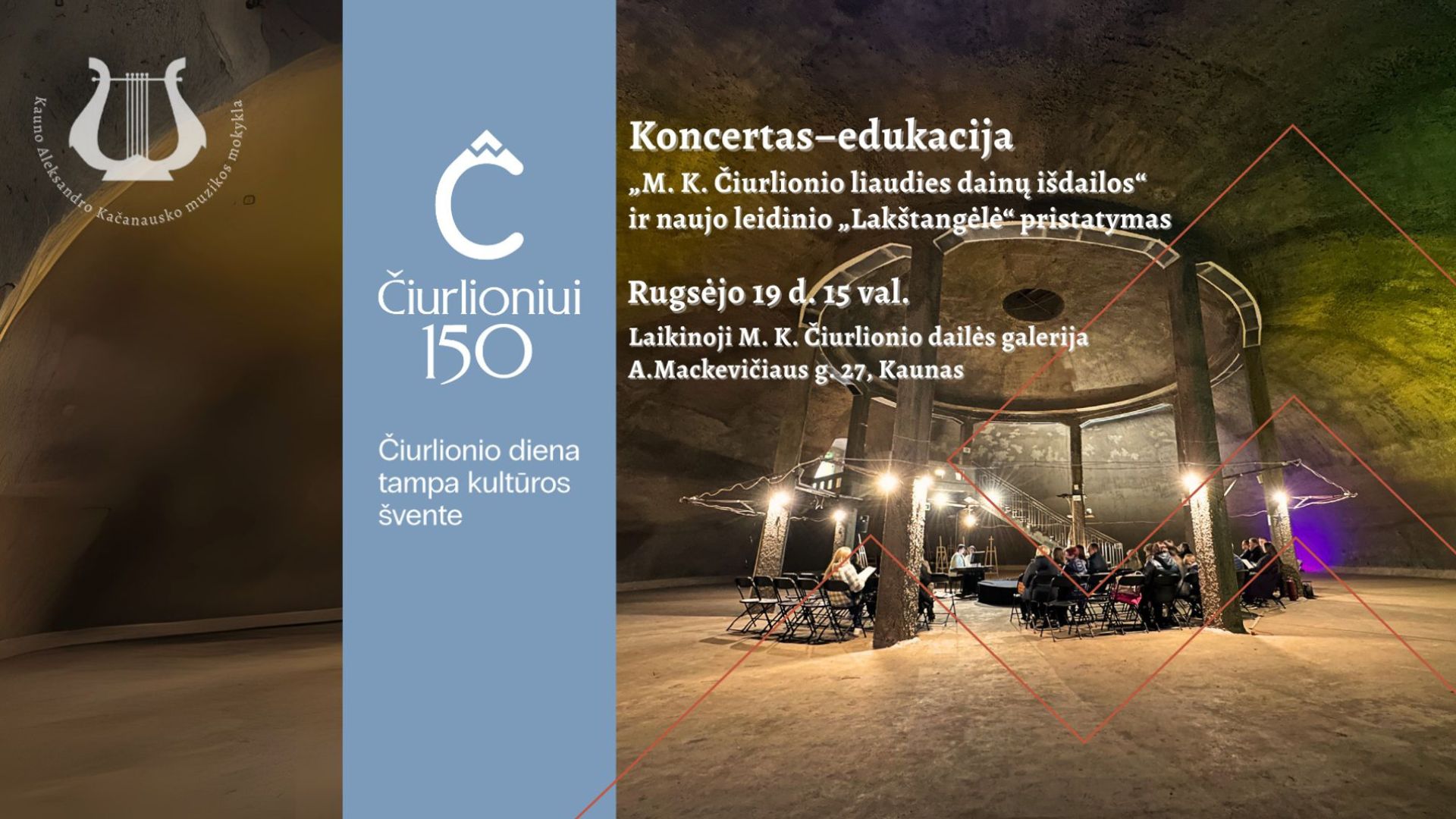 Rugsėjo 19 d. (penktadienį) 15 val. Kauno kolegijos Menų ir ugdymo fakulteto Menų akademijos Laikinojoje M. K. Čiurlionio dailės galerijoje (A. Mackevičiaus g. 27, Kaunas) vyks Kauno A. Kačanausko  muzikos mokyklos moksleivių atliekamų lietuvių liaudies dainų, kurias chorui harmonizavo M. K. Čiurlionis, o jaunųjų solistų balsams su fortepijono pritarimu aranžavo solinio dainavimo mokytoja Giedrė Virbickienė, koncertas – edukacija „M. K. Čiurlionio liaudies dainų išdailos“. Koncerto dalyviai turės galimybę pirmą kartą išgirsti būtent tokį M. K. Čiurlionio harmonizuotų lietuvių liaudies dainų atlikimą.