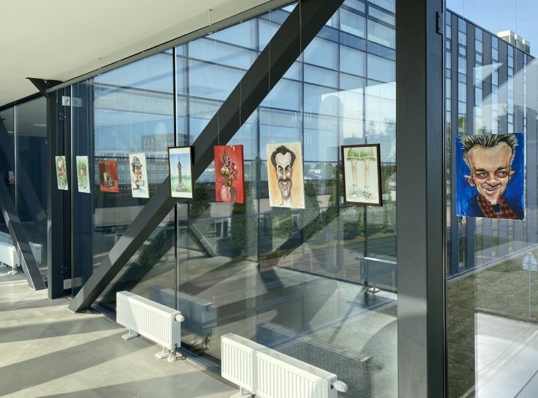 Iki birželio 30 d. Kauno kolegijos „Stiklo galerijoje“ (Pramonės pr. 22A, Kaunas) eksponuojamoje personalinėje Menų ir ugdymo fakulteto Menų akademijos Dailės kūrinių konservavimo ir restauravimo studijų programos lektoriaus, restauratoriaus, dailininko – karikatūristo Rolando Vičio parodoje „Didelės galvos ant mažų kojų“ pristatomi įvairaus laikotarpio tapybos kūriniai, o taip pat karikatūros, šaržo žanro darbai, atlikti skirtingomis raiškos priemonėmis ir technikomis: akvarele, guašu, tempera, aliejiniais dažais, plastilinu. Ekspozicijai atrinkti kūriniai – humoristiniai. Juose perteikiamas pozityvus dailininko žvilgsnis į supantį pasaulį.