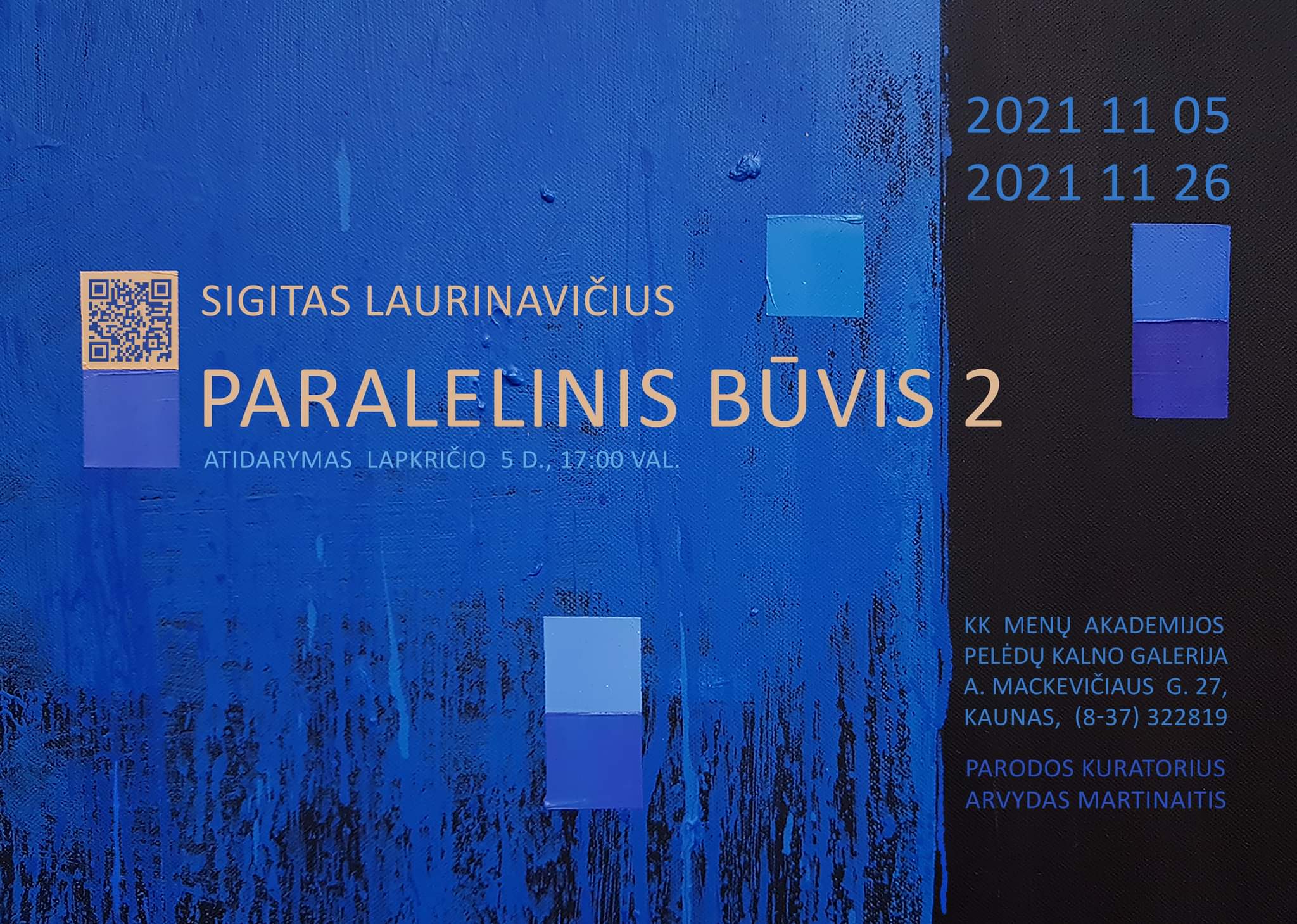 Lapkričio 5 d. (penktadienį) 17 val. Kauno kolegijos Menų ir ugdymo fakulteto Menų akademijos “Pelėdų kalno” galerijoje (A. Mackevičiaus g. 27, Kaunas) atidaroma personalinė tapytojo Sigito Laurinavičiaus paroda “Paralelinis būvis 2”.