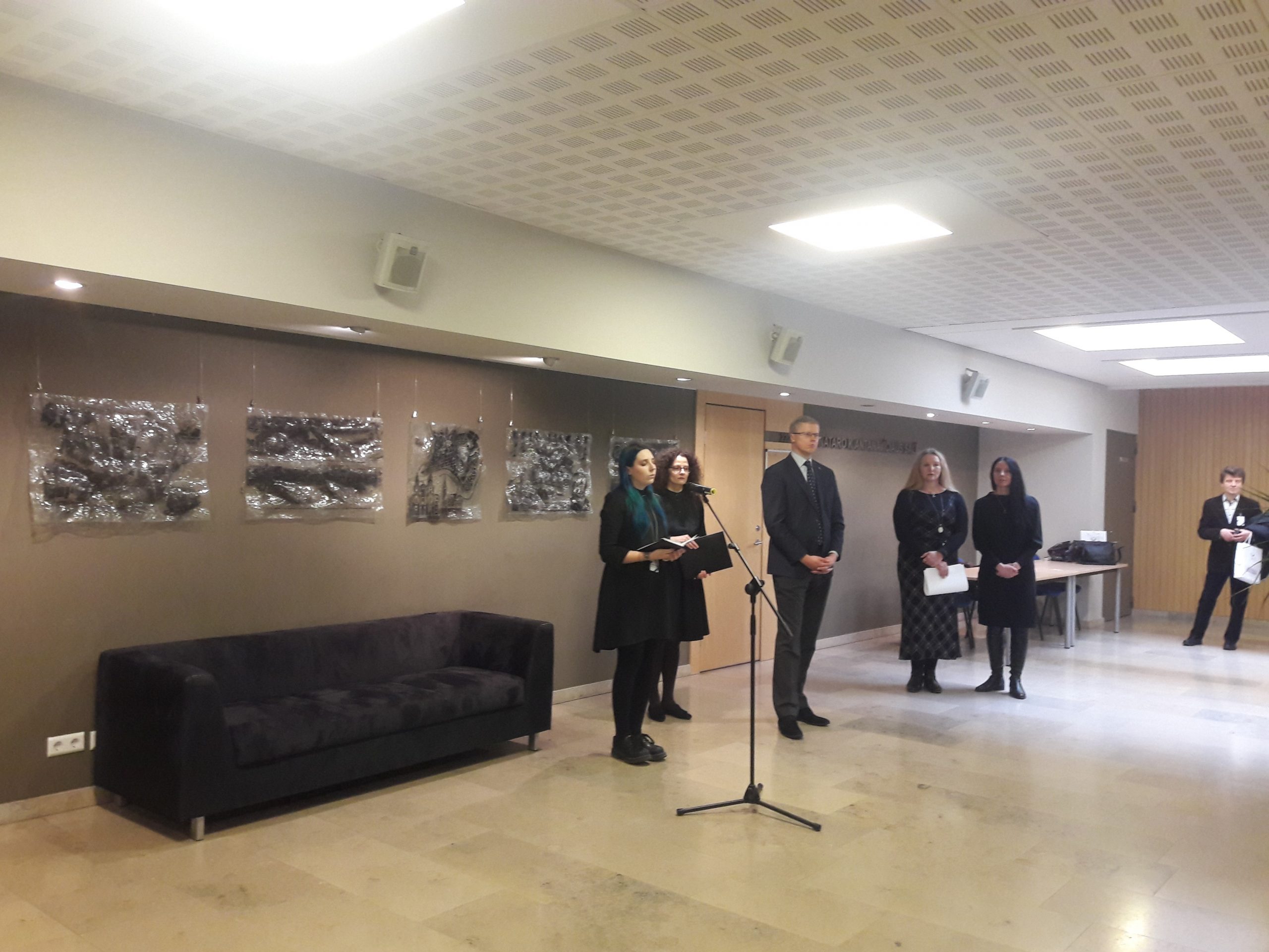 Gražiu, jautriu įvadu į parodas tapo pirmakursės Marijos Šimaitytės skaitytos Aušrinės Jakubauskaitės eilės laisvės tema bei antrakursės Gintarės Čeponytės atlikta lietuvių liaudies daina „Ulonai“.