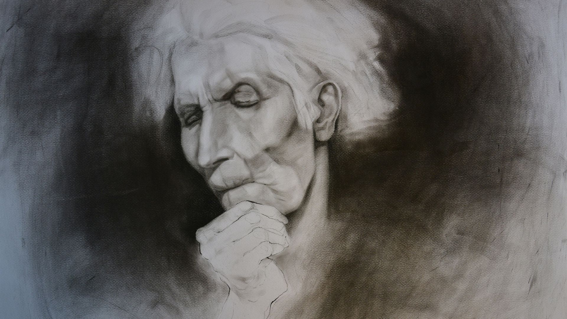 Džiaugiamės, kad tarp parodos autorių – ir Kauno kolegijos Menų akademijos dėstytoja Sigutė Bronickienė, pristatanti savo darbą šioje portreto žanrą aktualizuojančioje ekspozicijoje. Jos kūrinys „Mama. Tarp čia ir ten“ – jautri ir introspektyvi duoklė motinystei, artumo ir ilgesio būsenoms. Pasitelkdama anglies ekspresyvumą ir trapumą, dailininkė kuria subtilų motinos atvaizdą – tarsi regimą tarp realybės ir prisiminimo. Pavadinimas „Tarp čia ir ten“ leidžia interpretuoti kūrinį kaip refleksiją apie perėjimą, galbūt net ribą tarp gyvenimo ir anapusybės, fizinio buvimo ir dvasinio ryšio. Tai ne tik konkretus portretas, bet ir apibendrintas motinos simbolis – saugumo, šilumos, bet ir ilgesio ženklas. Minimalistinė, monochrominė raiška leidžia susitelkti į žvilgsnį, gestą, vidinę tylą, kuri sklinda iš paveikslo. Kūrinys kalba apie laikinumą, atmintį, ryšius, kurie tęsiasi už žodžių ir formų ribų.