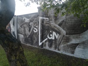 Kauno kolegijos Menų akademijos Dizaino studijų programos studentas Povilas Kupčinskas originaliu piešiniu dekoravo Kauno kolegijos Menų akademijos Dizaino kūrybinių studijų pastato vidinį kiemą juosiančią sieną.