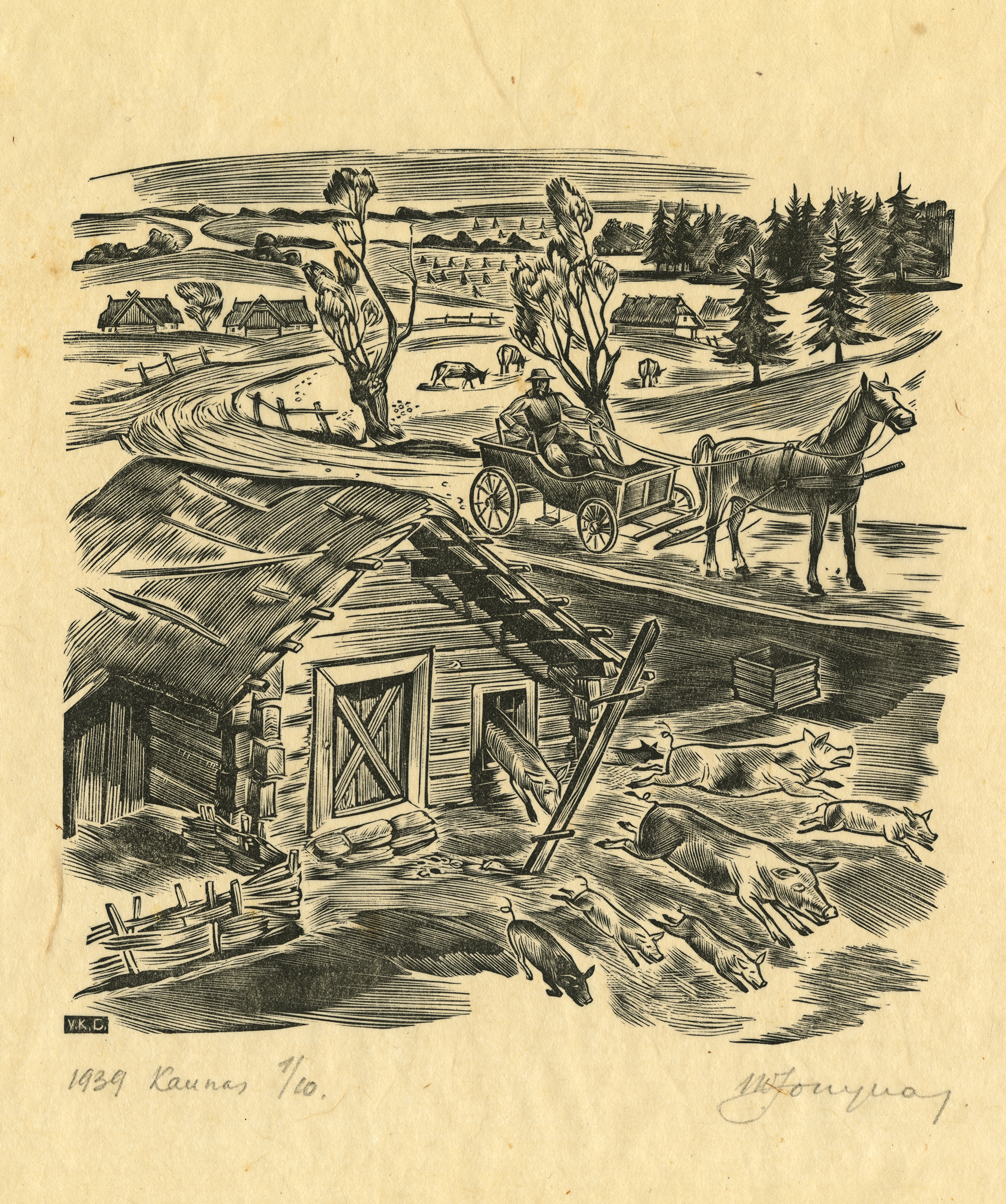 V. K. Jonynas 1935 m. sugrįžo į Lietuvą ir pradėjo dirbti Kauno meno mokykloje grafikos ir medžio skulptūros dėstytoju. Kiek vėliau ėmėsi konservatoriaus darbo Vytauto Didžiojo kultūros muziejuje bei Lietuvos kultūros paminklų apsaugoje. Dailininkas atkreipė dėmesį į lietuvių literatūros klasiko K. Donelaičio poemą „Metai“. Pradėjo kurti ne tik iliustracijas, bet ir knygos visumą: knygos proporcijas, formatą, šrifto dydį, iliustracijų ir tuščių plotų santykį. Panašius iliustracijų kūrimo principus taikė ir P. Cvirkos romanui „Žemė maitintoja“ (1940).