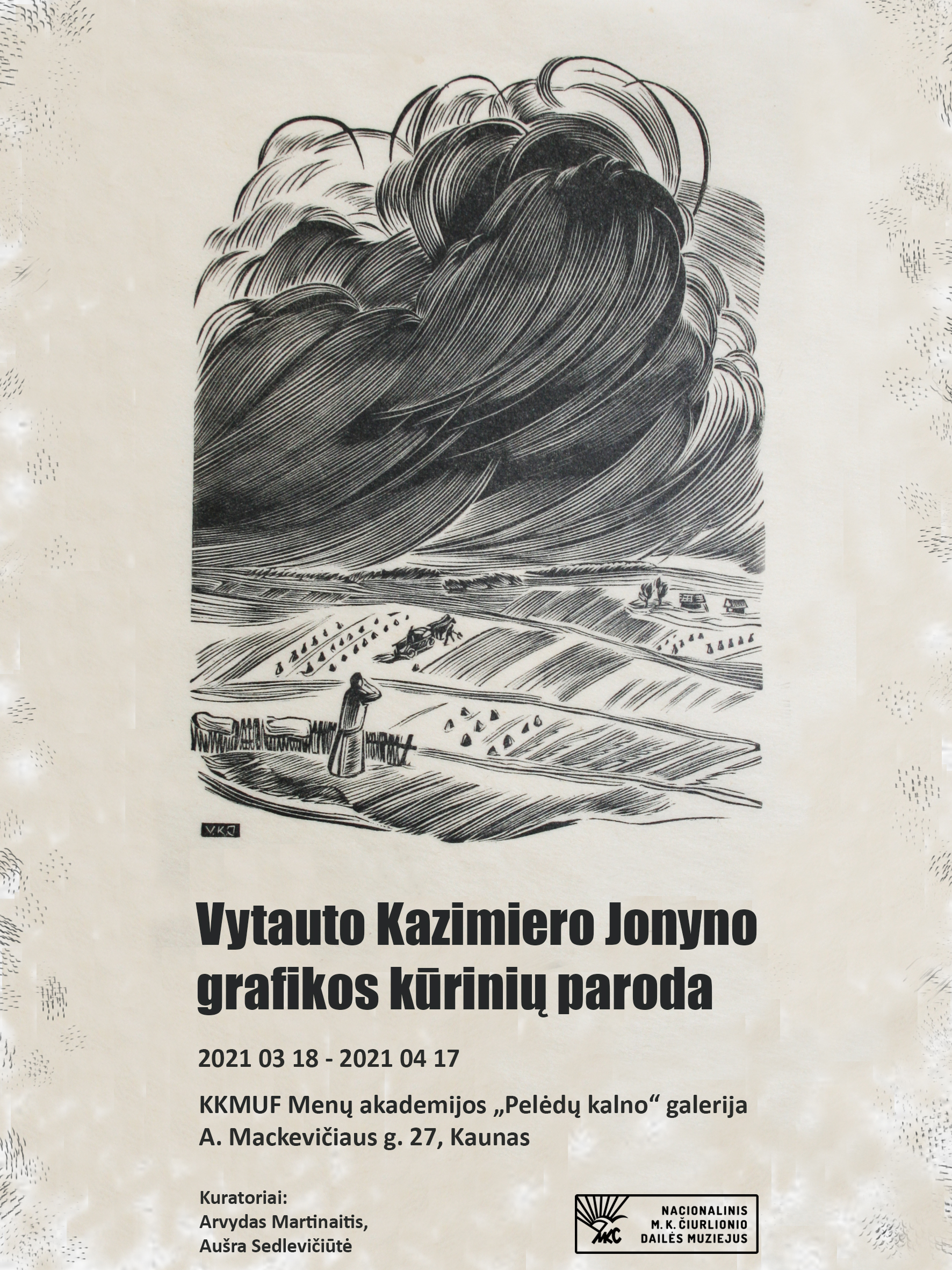 Kovo 18 d. Kauno kolegijos Menų akademijos ,,Pelėdų kalno“ galerijoje (A. Mackevičiaus g. 27, Kaunas) atidaroma Vytauto Kazimiero Jonyno (1907-1997) – vieno iškiliausių lietuvių išeivijos menininkų – grafikos kūrinių paroda. Ekspozicijoje – 1929-1944 m. sukurtų kūrinių reprodukcijos, atkeliavusios iš Nacionalinio M. K. Čiurlionio dailės muziejaus, V. K. Jonyno galerijos Druskininkuose.