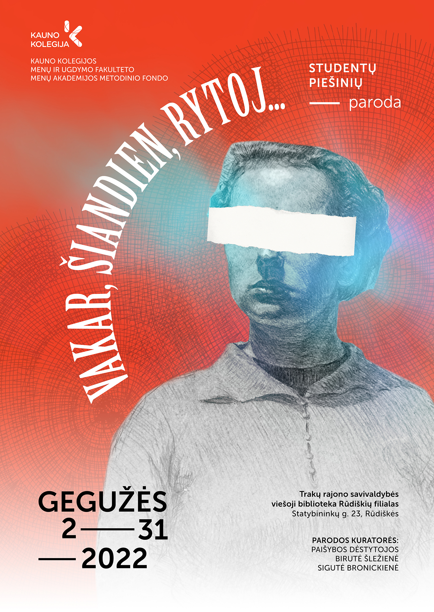 Iki gegužės 31 d. Trakų rajono savivaldybės viešosios bibliotekos Rūdiškių filiale (Statybininkų g. 23, Rūdiškės) eksponuojama Kauno kolegijos Menų ir ugdymo fakulteto Menų akademijos Stiklo, keramikos, odos, tekstilės meno studijų programos lektorės, keramikės Birutės Šležienės ir Dizaino studijų programos lektorės, grafikės Sigutės Bronickienės kuruojama studentų piešinių paroda „Vakar, šiandien, rytoj…“, kurioje pristatomi skirtingų menų, dizaino specialybių ir kursų studentų piešiniai, saugomi Menų akademijos metodiniame fonde.
