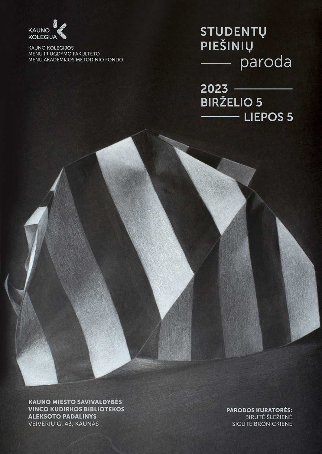 Iki liepos 5 d. Kauno miesto savivaldybės Vinco Kudirkos viešosios bibliotekos Aleksoto padalinyje (Veiverių g. 43, Kaunas) eksponuojama Kauno kolegijos Menų ir ugdymo fakulteto Menų akademijos studentų piešinių, saugomų metodiniame fonde, paroda.