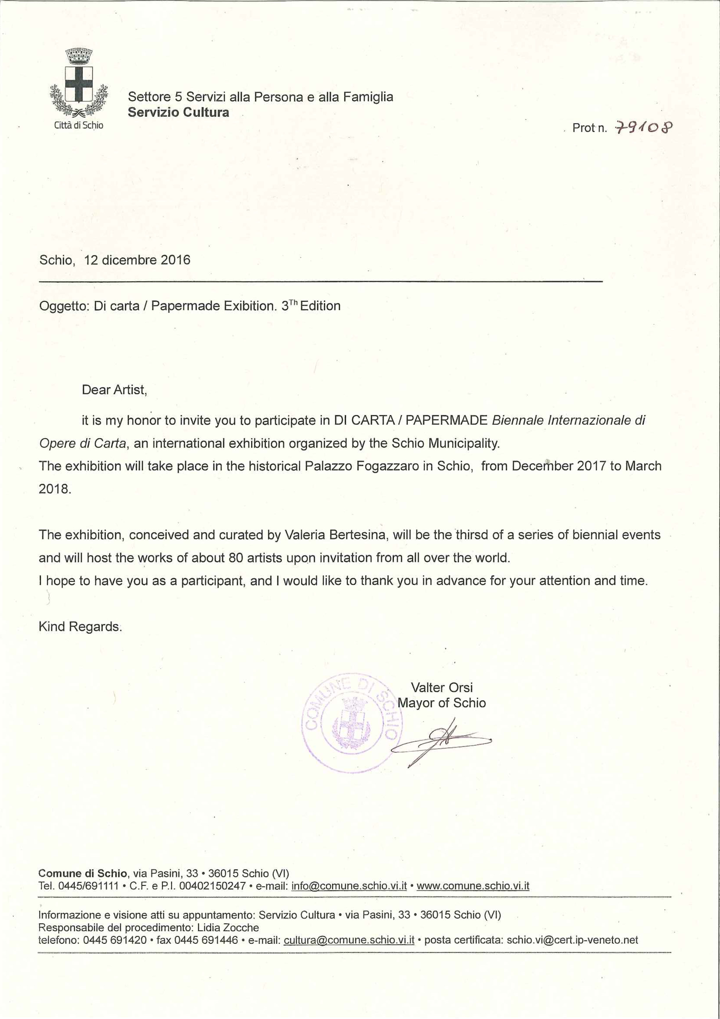 2017 m. gruodžio 10 d. – 2018-ųjų kovo 25 d. Skijo (Italija) mieste, esančiame Veneto regione, Vičencos provincijoje, vyks trečioji tarptautinė kūrinių iš popieriaus bienalė „Tai – mano vieta“, organizuojama Skijo miesto savivaldybės.