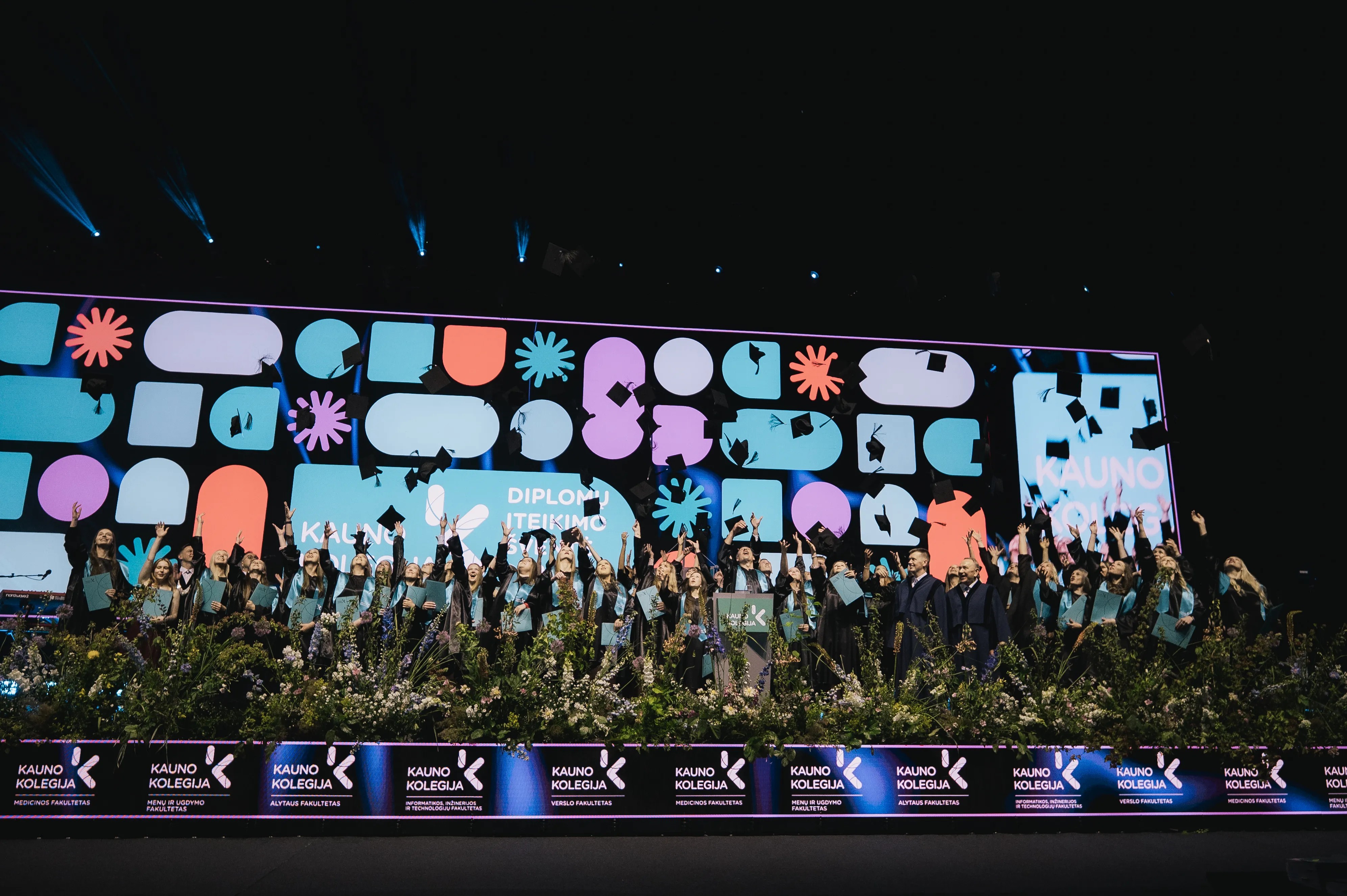 Prieš keletą dienų Kauno „Žalgirio“ arenoje vykusios iškilmingos šventės metu buvo pasveikinta arti 1000 Kauno kolegijos absolventų – jiems įteikti profesinio bakalauro kvalifikacinį laipsnį žymintys diplomai. Pilnutėlėje arenoje, lydimi artimųjų gausių plojimų, juos šiemet atsiėmė medicinos, socialinių mokslų, menų, technologijų, inžinerijos, informatikos ir kitų sričių absolventai. Diplomų įteikimo ceremonijos metu šventinę muzikinę programą dovanojo išskirtiniai atlikėjai – scenoje pasirodė dainininkė Paulina Paukštaitytė ir Vilius Popendikis su grupe.