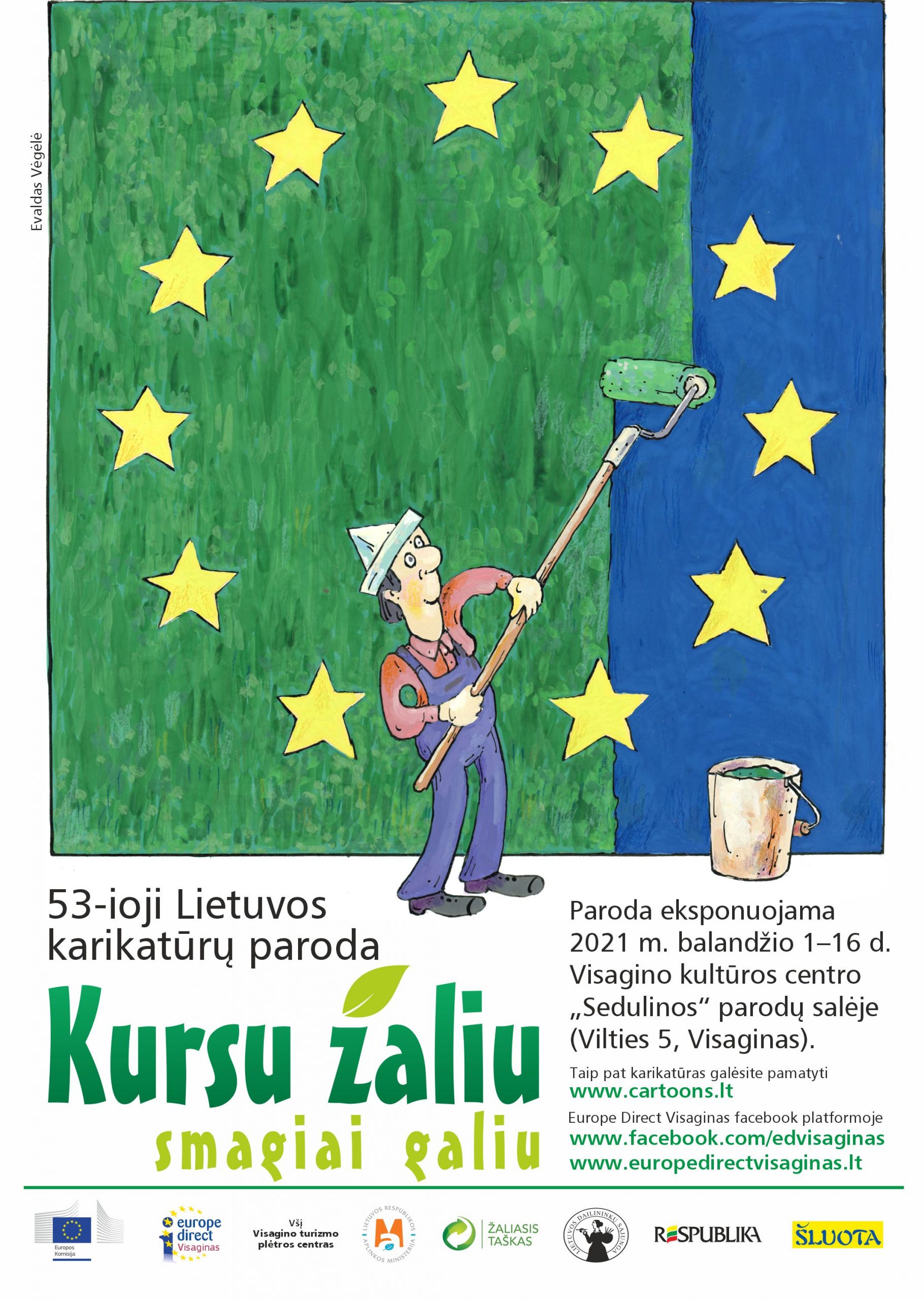 Europos žaliojo kurso temomis: ekologija, draugiška aplinkai veikla, energetika, klimato kaitos problemomis, susidomėjo net 42 Lietuvos dailininkai, kurie specialiai šiai parodai sukūrė ir pristato 198 darbus. Paroda veiks iki balandžio 16 d. Visagino kultūros centro „Sedulinos“ parodų salėje (Vilties 5, Visaginas), o vėliau karikatūros keliaus į Vilnių, Kauną ir kitus miestus. Taip pat bus išleistas spalvotas kūrinių katalogas.