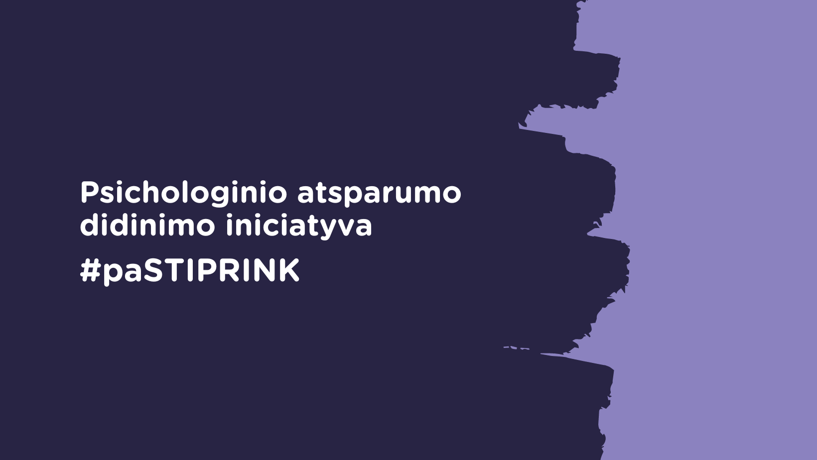 Psichologinio atsparumo didinimo iniciatyvos „paSTIPRINK“ tikslas – priminti bendruomenės nariams, kaip svarbu yra rūpintis savo psichologine sveikata ir emocine savijauta. Iniciatyvos metu bus dalijamasi naudinga informacija žmogaus psichologinei, emocinei ir fizinei sveikatai stiprinti. Plačiau apie iniciatyvą skaitykite čia.
